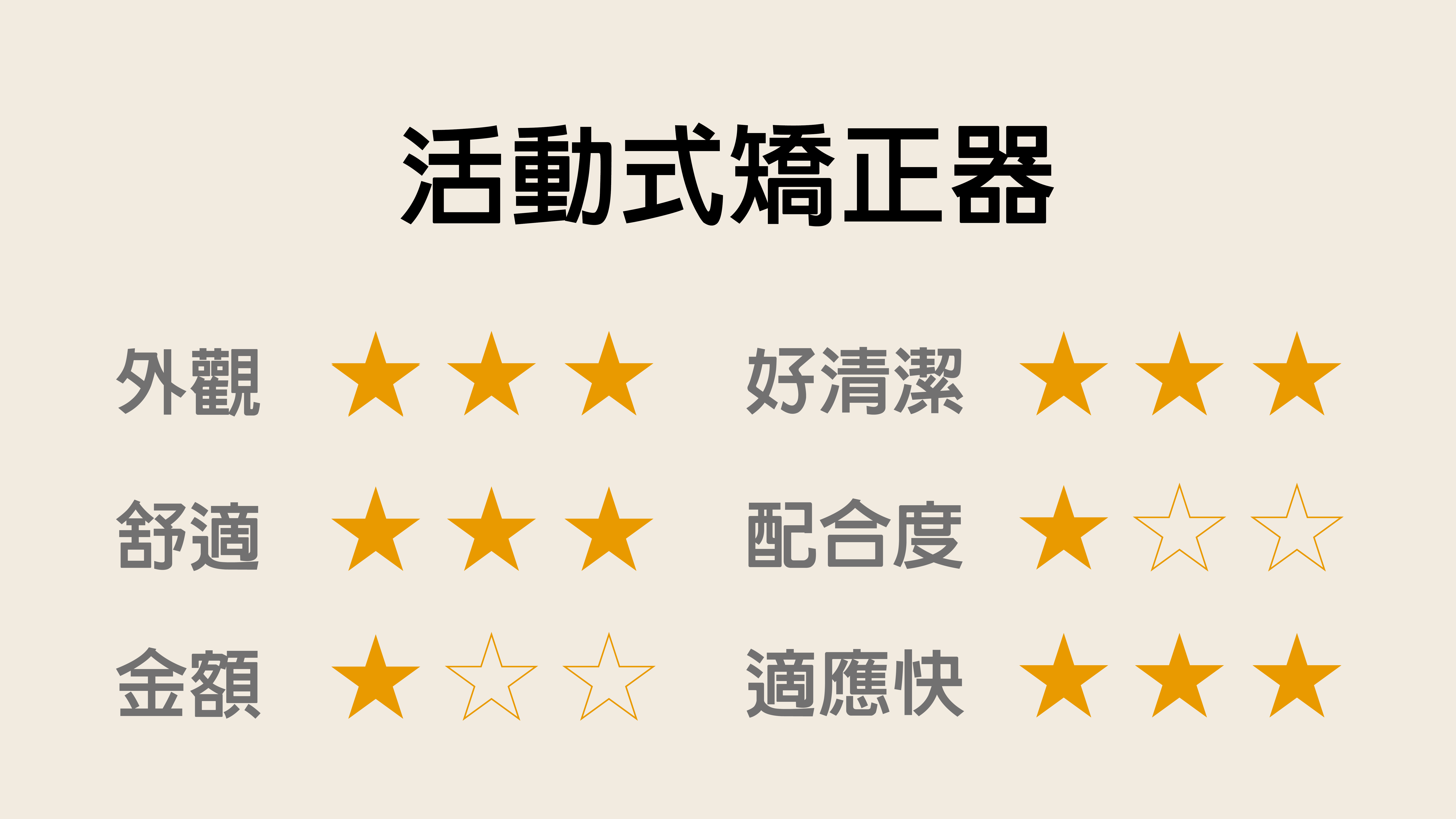 這類矯正器在清潔上會花費比較多時間,但它不太需要你的配合度,所以二十四小時都會一直發揮作用!