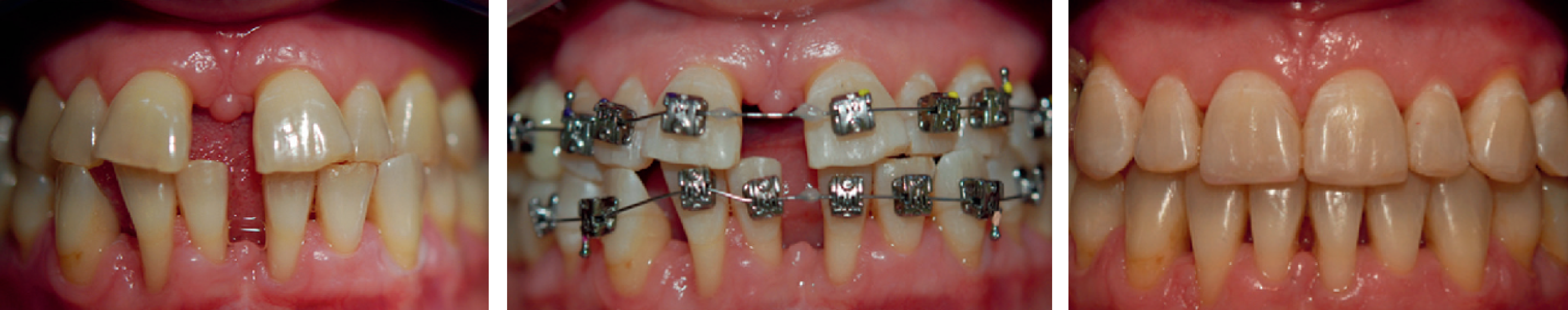 其實有很多中年人是沒有做過牙齒矯正的,牙齒排列的狀況也相對的凌亂,還有另外一種狀況是,牙齒因為骨質喪失而出現縫隙,若此情況是發生在前牙美觀區,在美觀上就會受到影響,如果能透過牙齒矯正治療,讓牙齒排列整齊,在美觀上會有很大的幫助。